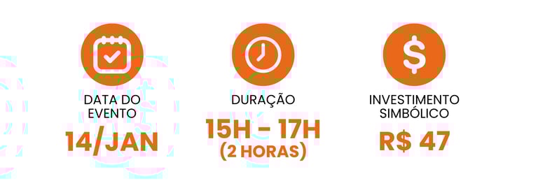 Workshop 100% ao vivo, com interação, prática e ferramentas aplicáveis.